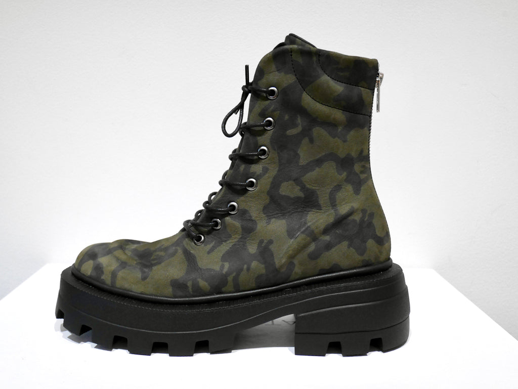 Жіночі черевики виготовлені з камуфляжного нубуку.